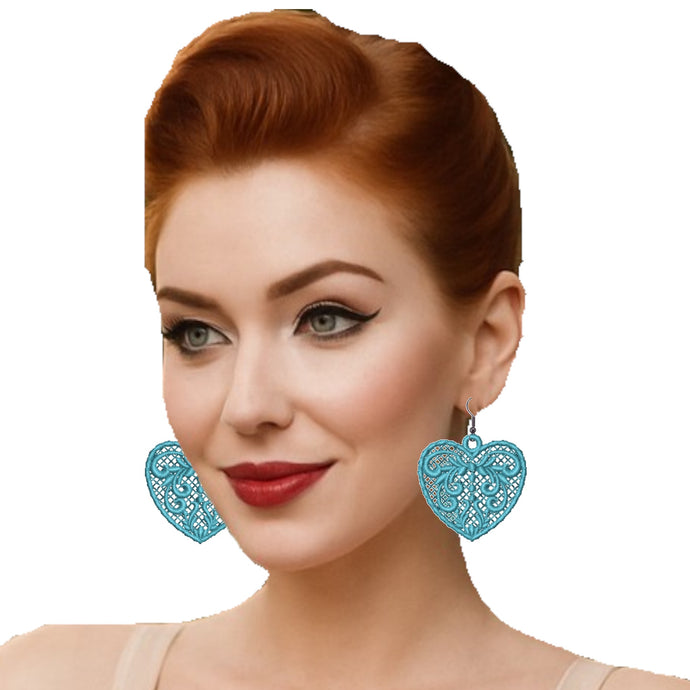 Blue Love Heart Lace Earrings